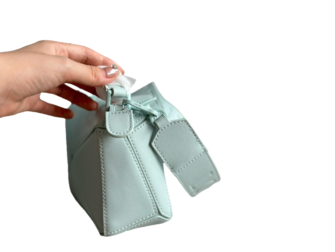 パズルバッグは、クリエイティブディレクターのジョナサン・アンダーソンがロエベで初めてデザインしたバッグです。パズルバッグの独創的なデザインは、精確なカッティング技術が作り出す幾何学的なラインと四方体のフォルムから成り立ちます。